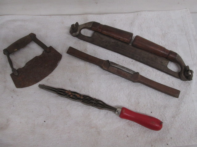 Unique Wood Shaving Tools. Antique blade with folding handles. Used to make furniture with a blade to chop onions! Great Old tools, please preview.