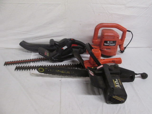 McCullough electric chainsaw with Black and Decker Electric Blower and hedge trimmers. All in good condition, please preview.