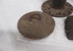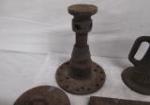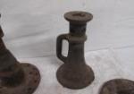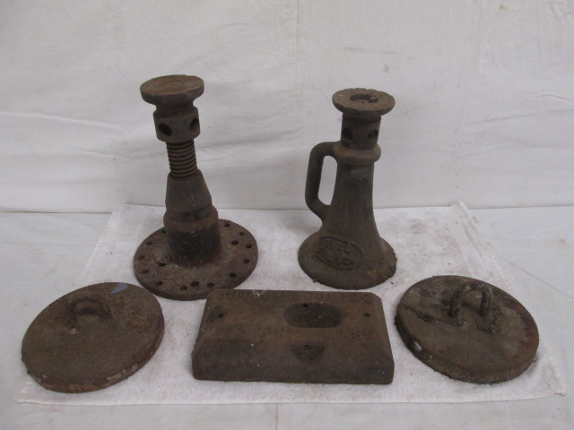Heavy duty bottle jacks with 1 inch steel plates, possible anchors and a butcher polish Company Boston Mass iron rectangle piece. All cool vintage pieces in good condition. Please preview.