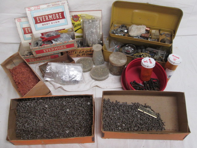 Assortment of small screws, nuts and bolts. Once belonged to a gentleman who worked for the Haywood Wakefield company. These were his tools that he used in the process of making furniture