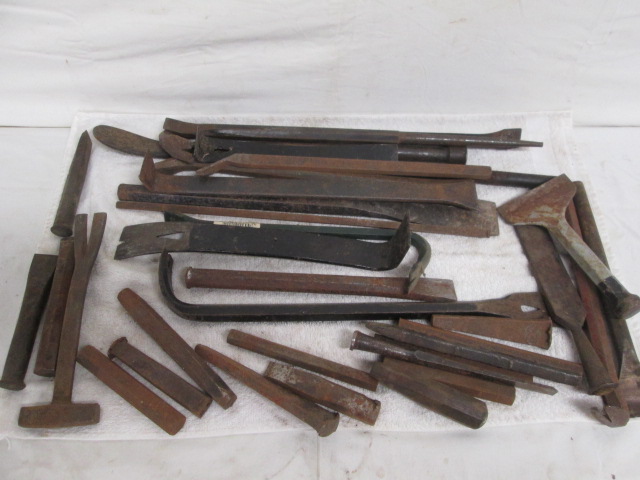 Collection of heavy duty pry bars, chisels and wedges. All in good usable condition, please preview.