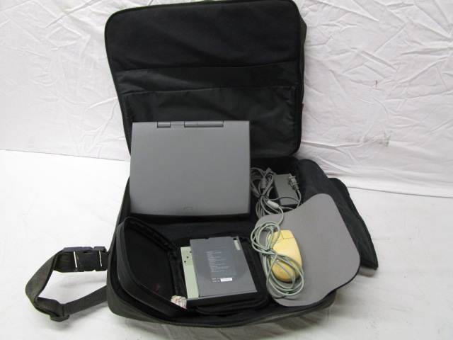 This vintage pair of electronics includes a NEC Versa 6030X laptop featuring a clamshell notebook produced by NEC Corporation between 1993 and 2009. Also included is a Toshiba XM-1402BCD-ROM Drive. These items come in a Sharp brand lap top case and include the wires and mouse. These items have not been tested and are being sold as is. They are in previously owned condition. Please preview.