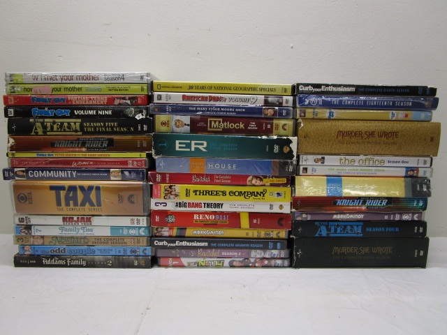 This Collection of 40 DVDs/DVD sets features a variety of television series including "ER", "Taxi", "Matlock", "The Mary Tyler Moore Show and more. These DVDs are in previously owned, good condition. Please preview.