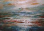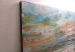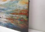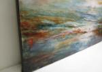This stunning 45-1/2" X 32" abstract painting on canvas stretched over a painter's frame is in previously owned, good condition. Please preview.