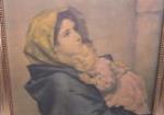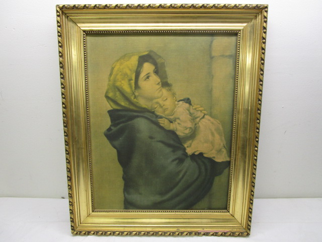 This simply gorgeous 20-1/2" X 24-1/2" vintage print of a famous work by Italian artist Roberto Ferruzzi titled Madonnina is housed in a beautiful gold toned, beaded frame. This print is is in previously owned, very good condition. Please preview.
