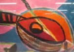 This very nice, 26-1/2" X 22", print of a painting titled "Still Life With Guitar" by Pablo Picasso is in previously owned, good condition. Please preview.