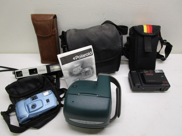 This assortment of vintage cameras includes a Polaroid 600 Instant camera, an Ansco Auto Focus 835, a Studio 35 camera and a Continental Electroflash 555 camera. These items are in previously owned condition. These items have not been tested they are being sold as is. Please preview.