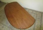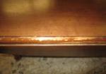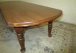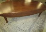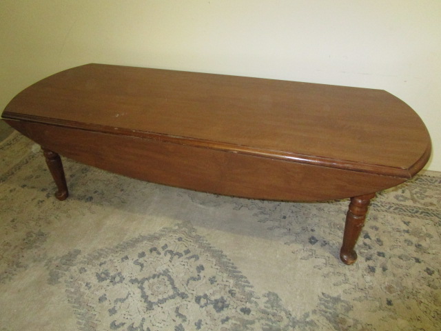 This traditional drop-leaf coffee table measures 20"W X 53" X 16"H. When the drop leaves are extended, the width extends to 34". This item is in previously owned condition. One of the support arms under the leaf is missing and will need repair to use both of the leaves. Please preview.