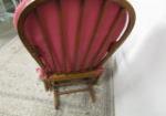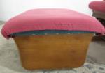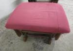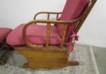 This sweet Bentwood style glider rocker and matching rocking ottoman features a solid wood frame and dark mauve seat and back rest pads. The chair measures approximately 22"W X 25"D X 39"H. This item is in previously owned condition. Please preview.