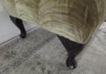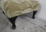 This gorgeous plush over-sized velvet, pleated bench features dark wood cabriole legs. This item measures 37"W X 23"D X 17-1/2"H. The legs do have some minor scratches that could easily be "touched up". This item is in previously owned, good condition. Please preview.