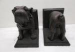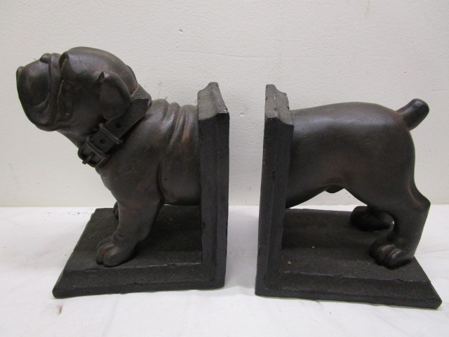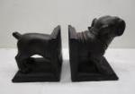 This whimsical pair of resin bull dog bookends are unique. One bookend is the front end of the dog, the other end is the back end of the dog. There is a small chip in the "jowl" of the dog. This item is in previously owned condition. Please preview.