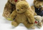 This collection of five Teddy bears includes three Vermont brand Teddy bears (including the 16" retired "Ganster Bear and the "Forever Friend" Bear) and more. These items are in previously owned condition. Please preview.