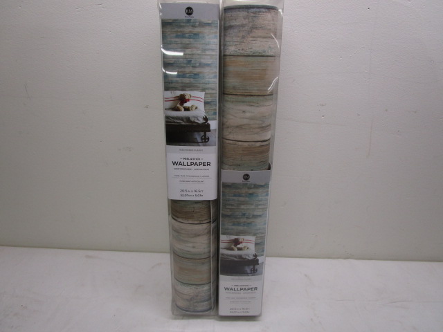 These two new packages of "Room Mates" weathered planks style peel and stick wall paper. Each new package contains 20-1/2" X 16-1/2" of wall paper. These packages are in new condition. Please preview.